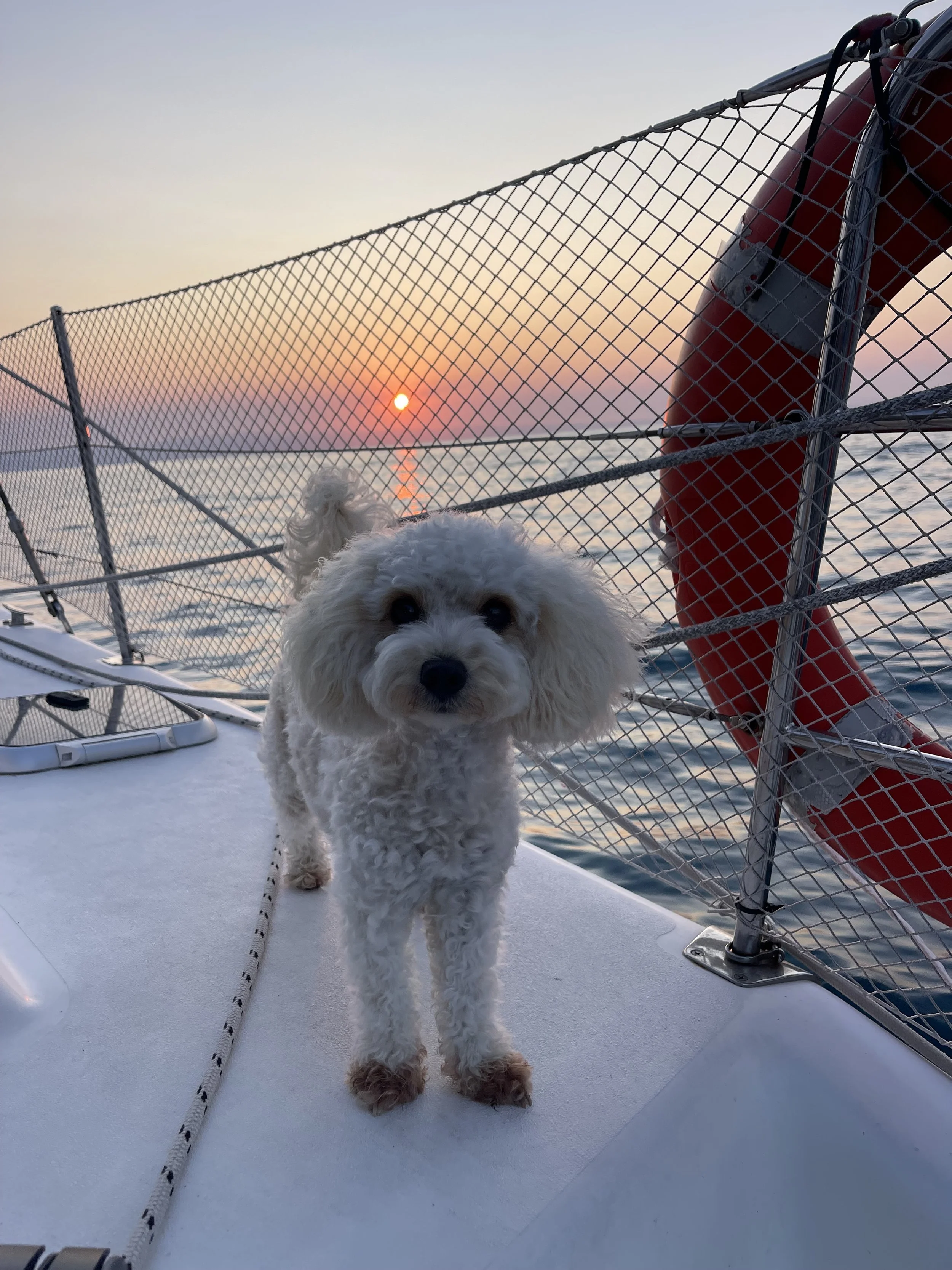 She is a toy Cavoodle and she first moved aboard October 2022 when she was a puppy.